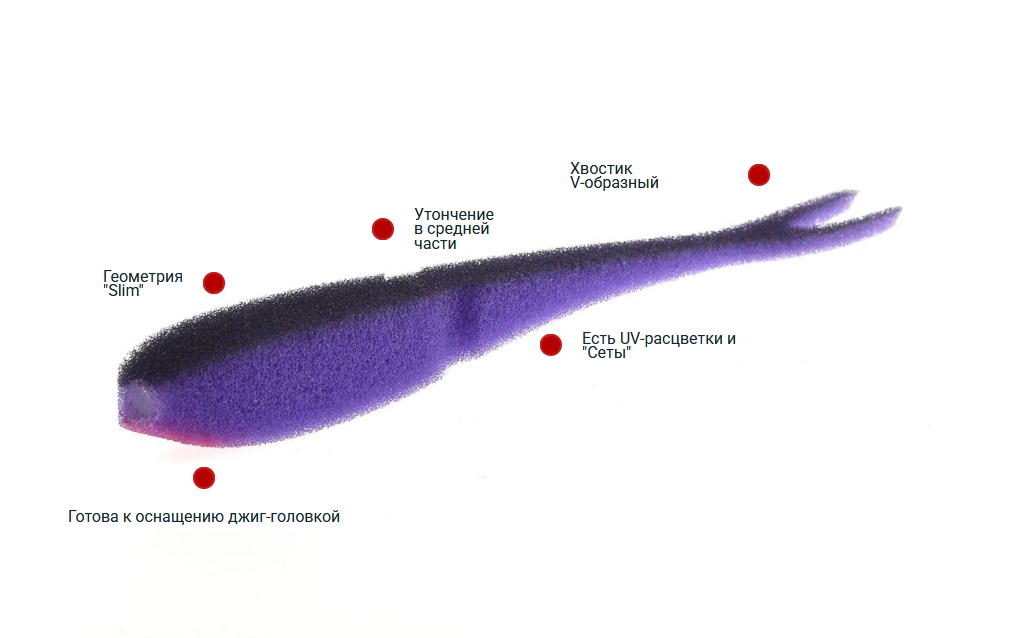 Если оснащать поролоновую рыбку джиг-головкой, то в идеале крючок должен выходить примерно на расстоянии от 1/3 до 1/2 (середины) ее длины. Так достигается максимальная подвижность и лучшая реализация поклевок.