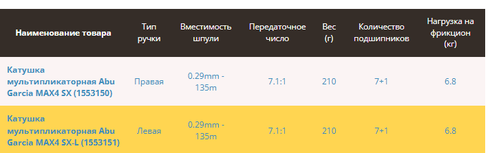 Обновленные катушки Abu Garcia Max4 SX обладают передаточным числом 7.1:1. Для изготовления корпуса и боковых крышек используется графит – материал, помогающий найти компромисс между прочностью и небольшим весом. Внутри расположен надежный механизм Dura Gear с бронзовыми деталями. Рукоять, выполненная из металла, имеет изогнутую форму. Оснащена парой плоских кнобов с прорезиненной поверхностью. Фрикционный тормоз Power Disc рассчитан на нагрузку до 6,8 кг. Кроме фрикциона, есть также осевой тормоз и магнитный. С их помощью катушку можно настроить в точности так, чтобы она максимально эффективно работала в тех или иных условиях ловли. Шпуля выполнена из металла, с помощью перфорации ее масса снижена.