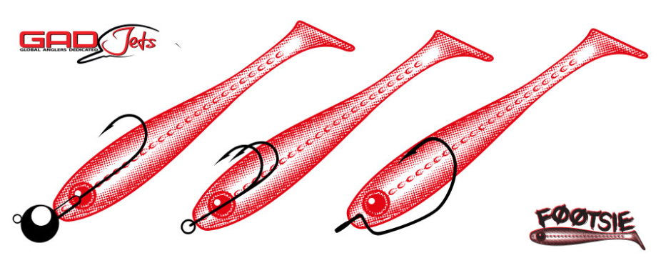 GAD® Footsie – виброхвост, легко оснащаемый всеми популярными методами: на джиг-головке, на офсетном крючке, двойном крючке, с применением различных снасточек. Для простоты оснащения в конструкции Footsie применены все “фирменные фишки”, придуманные Pontoon21 для своих мягких приманок: